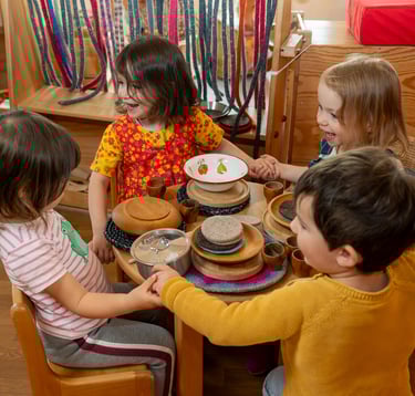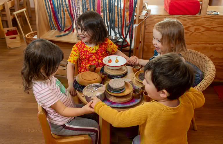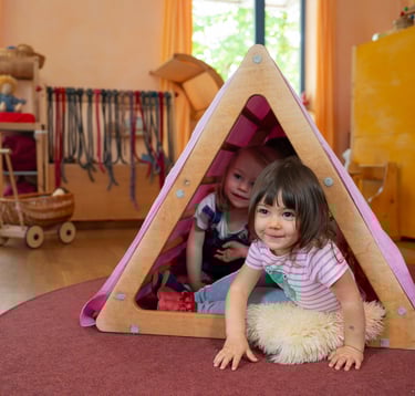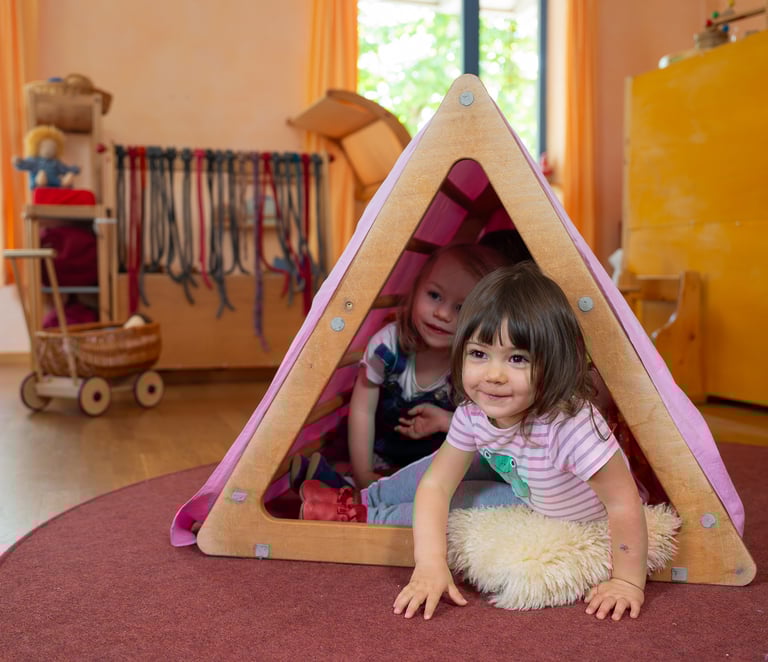 In unserer pädagogischen Arbeit ist es wichtig, eine Umgebung zu schaffen, die die gesunde Sinnesentwicklung der Kinder fördert. Wir achten insbesondere darauf, alle Sinne vor Überreizung zu schützen, damit sie sich natürlich und gesund entfalten können. Dies erreichen wir durch: liebevoll und natürlich gestaltete Räume , sanfte Farbgebung , einfache Spielsachen aus Naturmaterialien , feine Klänge von Instrumenten und Lebensmittel aus biologischem Anbau . In ihrer Bewegungsentwicklung und ihrem Spielverhalten werden die Kinder möglichst frei begleitet. Jedes Kind soll in seinem eigenen Tempo und auf seine eigene Weise sich und die Welt erkunden können, ohne durch vorgegebene Aktivitäten eingeschränkt zu werden. Das freie Spiel wird durch die Gestaltung der Umgebung, die Ausstattung der Räume und das vielfältige Spiel- und Bewegungsmaterial gefördert. So entwickeln die Kinder soziale Kompetenzen, ihre motorische Entwicklung wird unterstützt, und damit auch ihre sprachlichen Fähigkeiten, da diese eng miteinander verbunden sind.