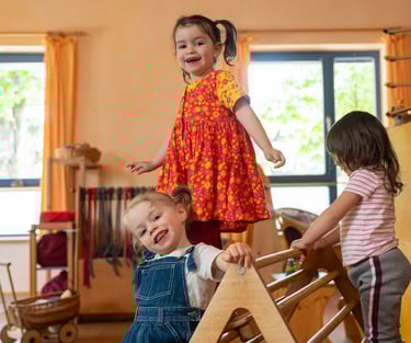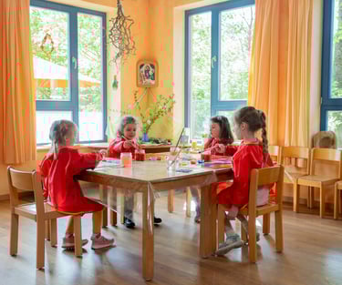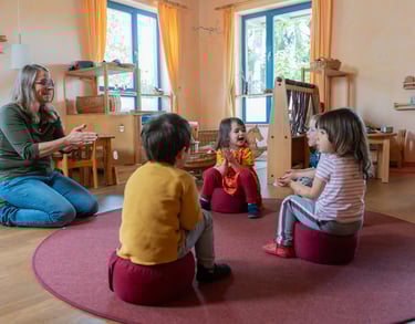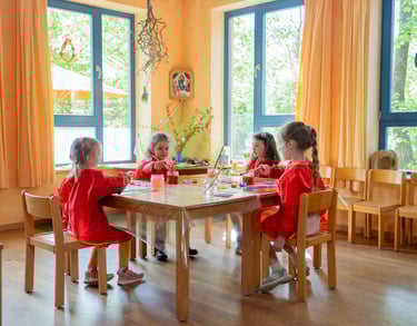 Unsere Kindergartengruppen sind klein und familiär, mit nur 14-16 Kindern pro Gruppe. Wir gehen jeden Tag raus und erleben alle Jahreszeiten intensiv in der Natur.